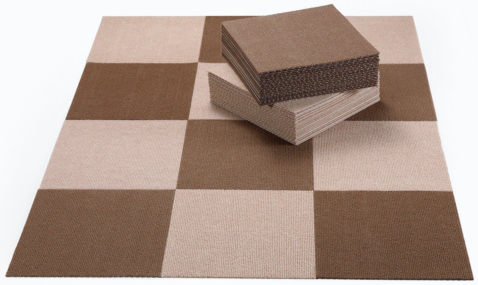 【日本製 撥水 消臭 洗える】サンコー ずれない ジョイントマット 25×25cm ブラウンセット 50枚組 カーペットタイプ おくだけ吸着 タイルマット OF-61