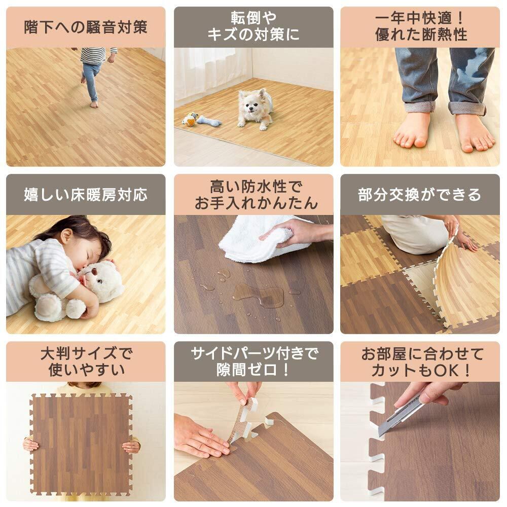 アイリスプラザ ジョイントマット 大判 3畳 60cm 木目 10mm 木目調 インテリア カラーマット 防音 傷防止 ペット 赤ちゃん 60×60㎝ ブラウン MKJTM-601 16枚セット