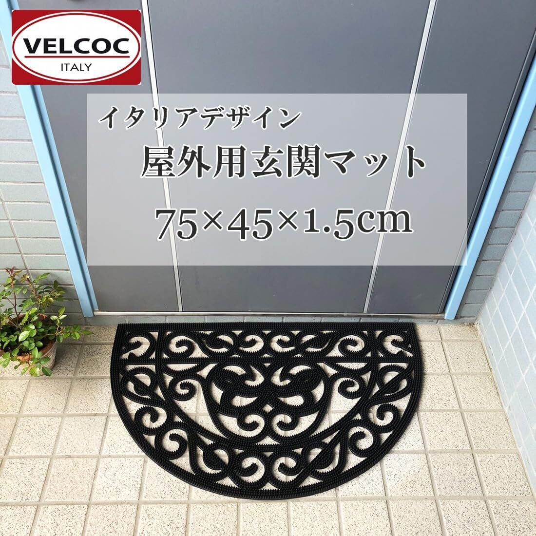 コレクションリビング VELCOC社 玄関マット アイアンライトハーフムーン 75×45×1.5cm ゴム製 おしゃれ アイアン調 洗える イタリア企画 滑り止め 汚れ落とし 耐水 輸入雑貨 欧州 北欧 ドアマット デザインマット エントランスマット 半円