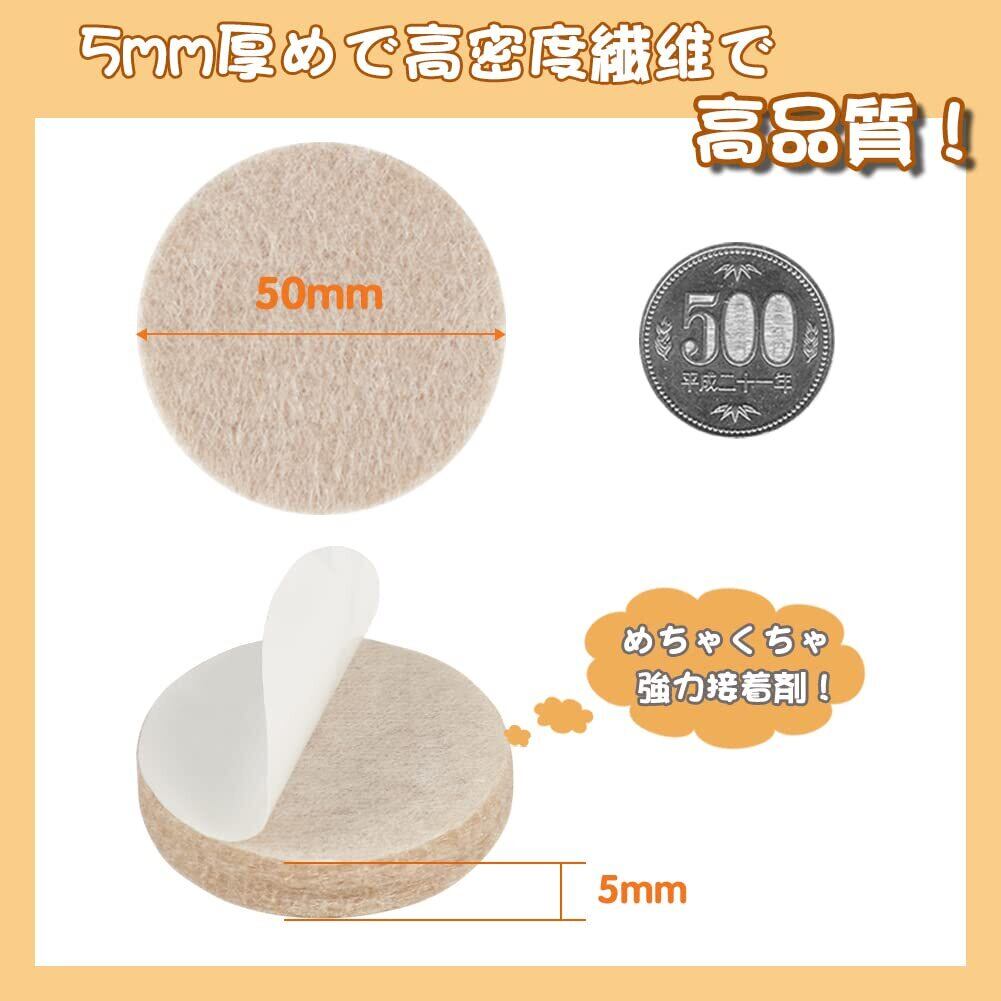 ギノヤ 5mm厚めフェルトパッド, 18枚入り 50mm 丸い家具保護パッド キズ防止・防音 (ベージュ)