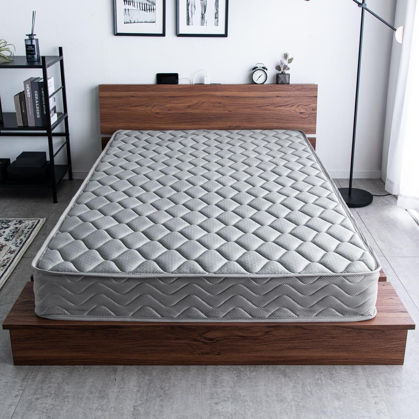 【在庫処分】タンスのゲン マットレス ダブル 厚み20cm 高密度 496個 ボンネルコイル ベッドマット 通気性 グレー 17800018 (102513)