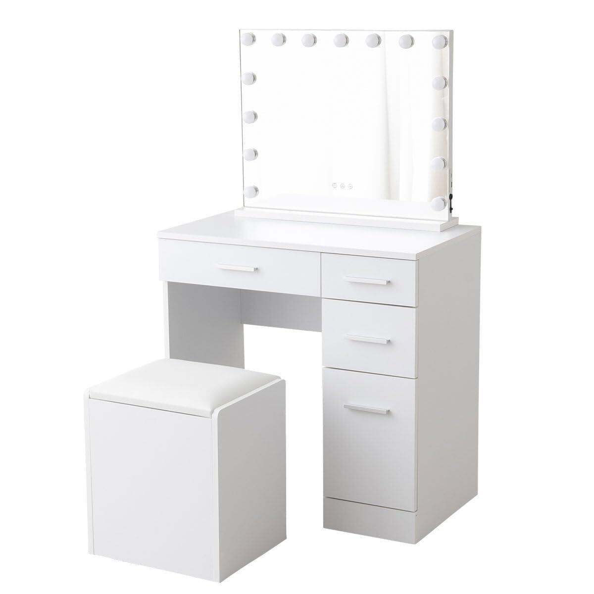 【在庫セール】エムール ドレッサー ライト付き ハリウッドミラー ドレッサーセット 明るさ無段階調整 カラー調整 タッチ操作 USBポート付き スタンド・壁掛け2way仕様