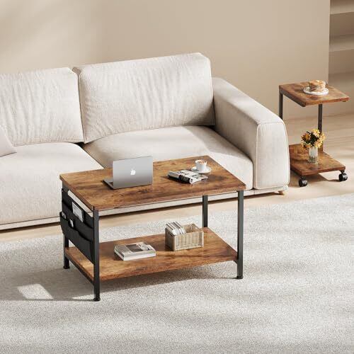【人気商品】YeTom ローテーブル 一人暮らし リビングテーブル センターテーブル 収納付き 幅60cm コーヒーテーブル ピンテージ