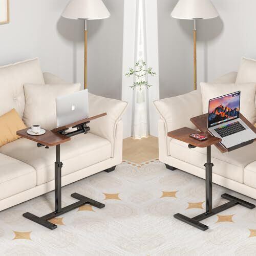LBFXQ ベッドサイドテーブル 昇降式 幅60×奥行40×高さ40-85cm ベッドサイドテーブル 360°回転 ソファーテーブル 介護テーブル 高さ調整 耐水 高温に強い 安定 耐荷重がいい 耐久性 小型 省スペース C字型 目に見えないキャスター 組立簡単 小型家具 家用昇降式テーブル