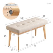 タンスのゲン ダイニング ベンチ 単品 幅100 ファブリック ウッド ダイニングベンチ ダイニングチェア 長椅子 二人掛け 49600192(88618)