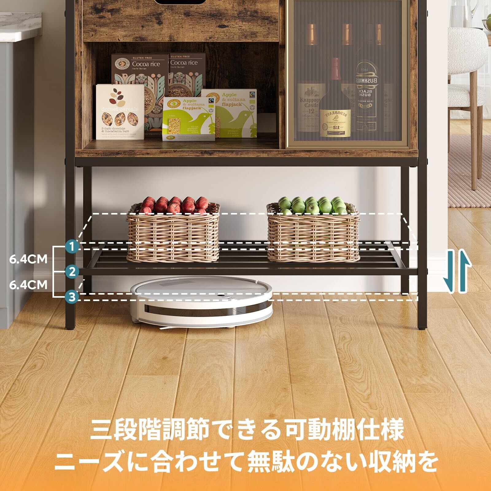 【キッチン収納ストレス解消!収納力拡張!】物がいっぱいのキッチンはやっぱり収納力決定!このレンジラックは扉収納、引き出し、2段上段棚、3段オープン棚やS字フック8個をすべて1台で装備しています。電子レンジ、コーヒーメーカーなどのキッチン家電・食器類・キッチン用品をいっぱい収納できます。限られたキッチンスペースでも、空間を圧迫せず100%有効利用可能です。