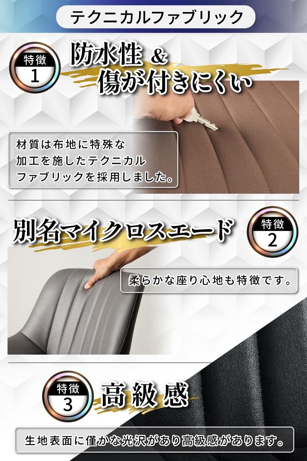 テクニカルファブリック採用: 通気性が良く、柔らかく肌触りの良いテクニカルファブリックを使用。長時間座っても快適で、疲れにくい座り心地を提供します。