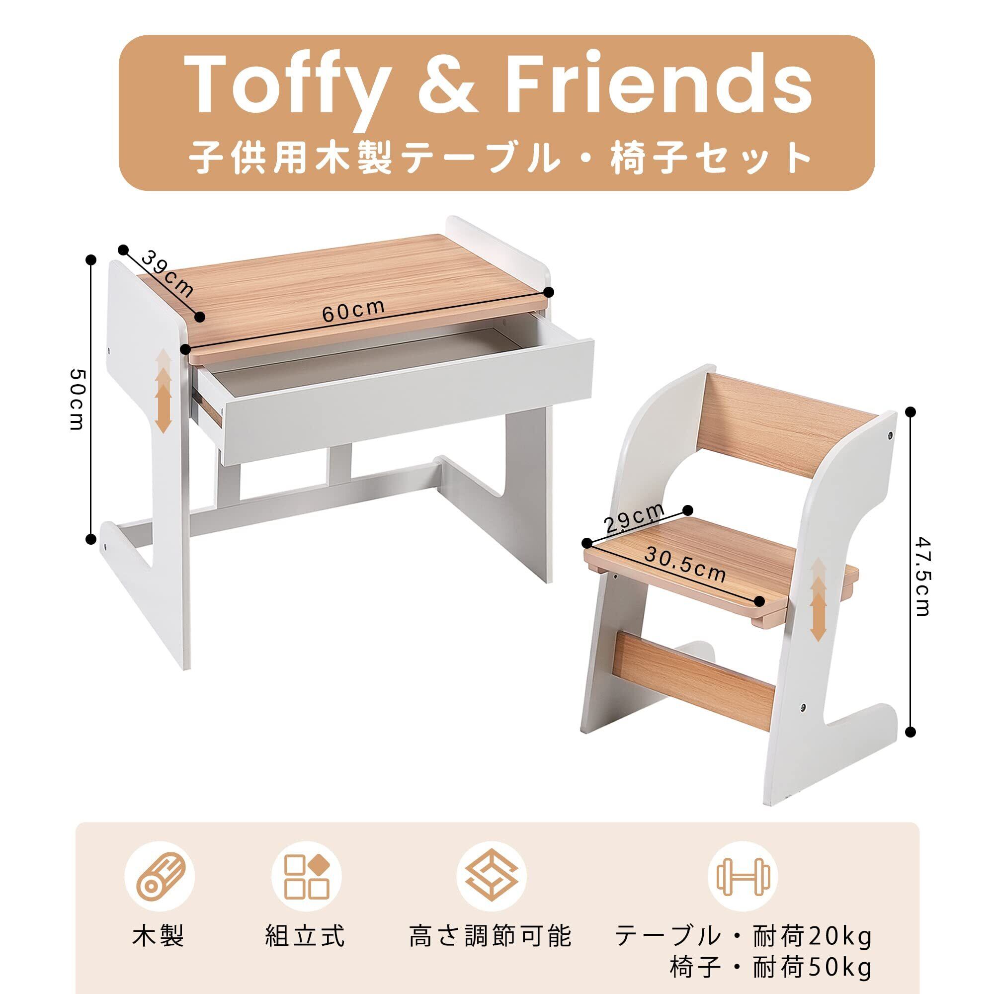 Toffy & Friends 子ども用テーブル 椅子セット 木製 キッズテーブル&チェア 2点セット子供プレイ テーブル チェア 2点セット 学習/絵かき/ダイニング…