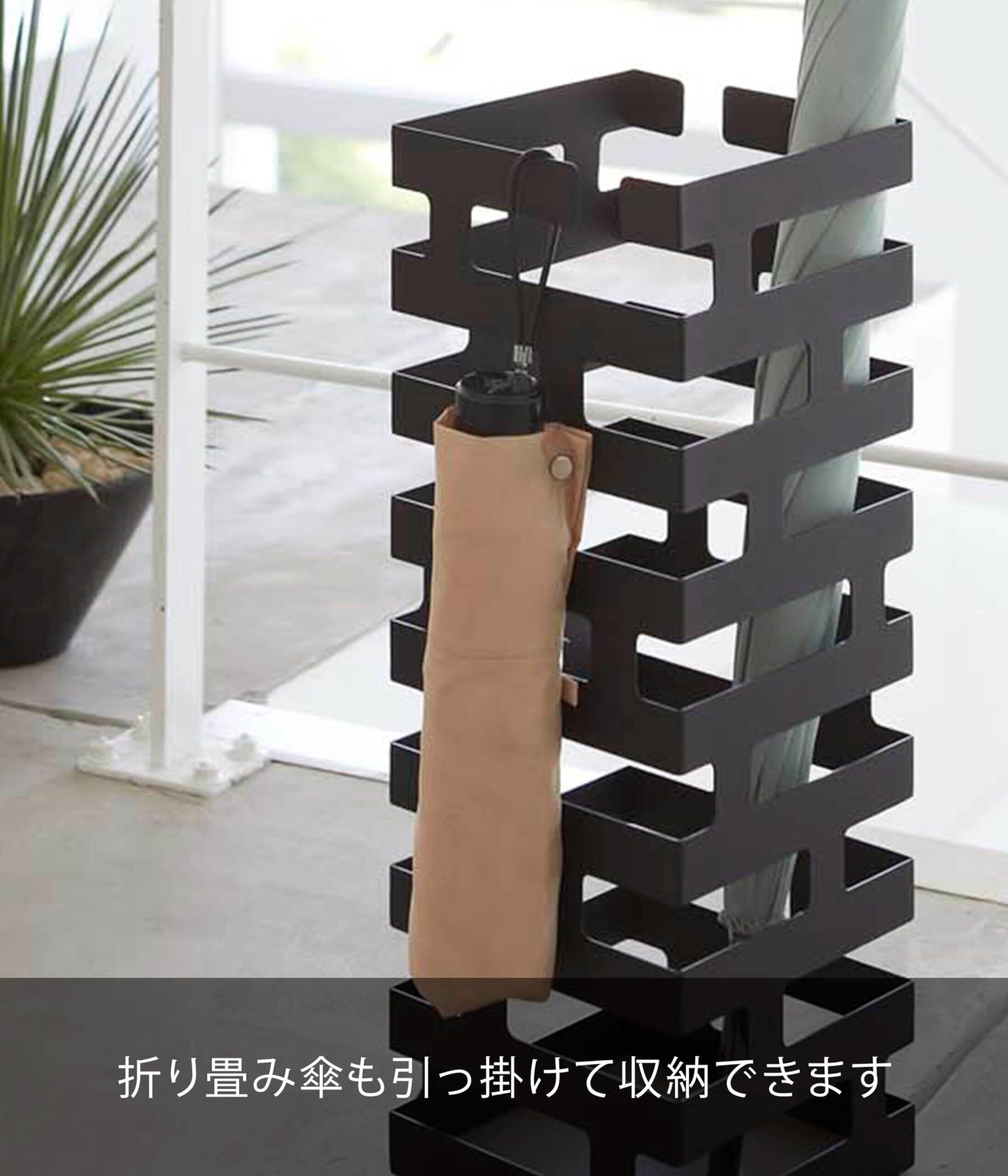 山崎実業(Yamazaki) かさたて ブリック ブラック 約W15×D15×H43cm 傘立て 折り畳み傘も収納可能 2363