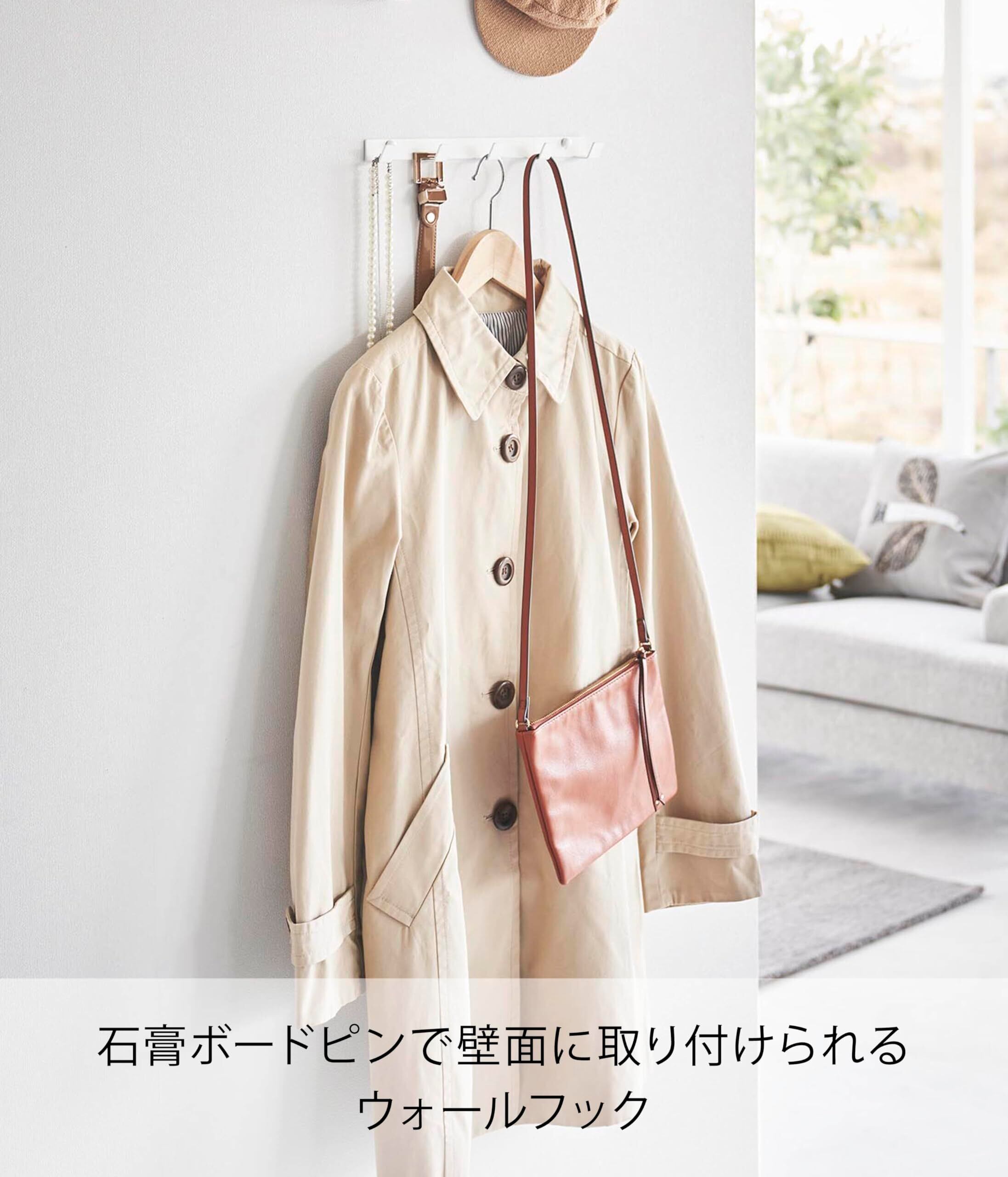 石こうボードピンで壁面に簡単取り付けできるウォールフック5連。