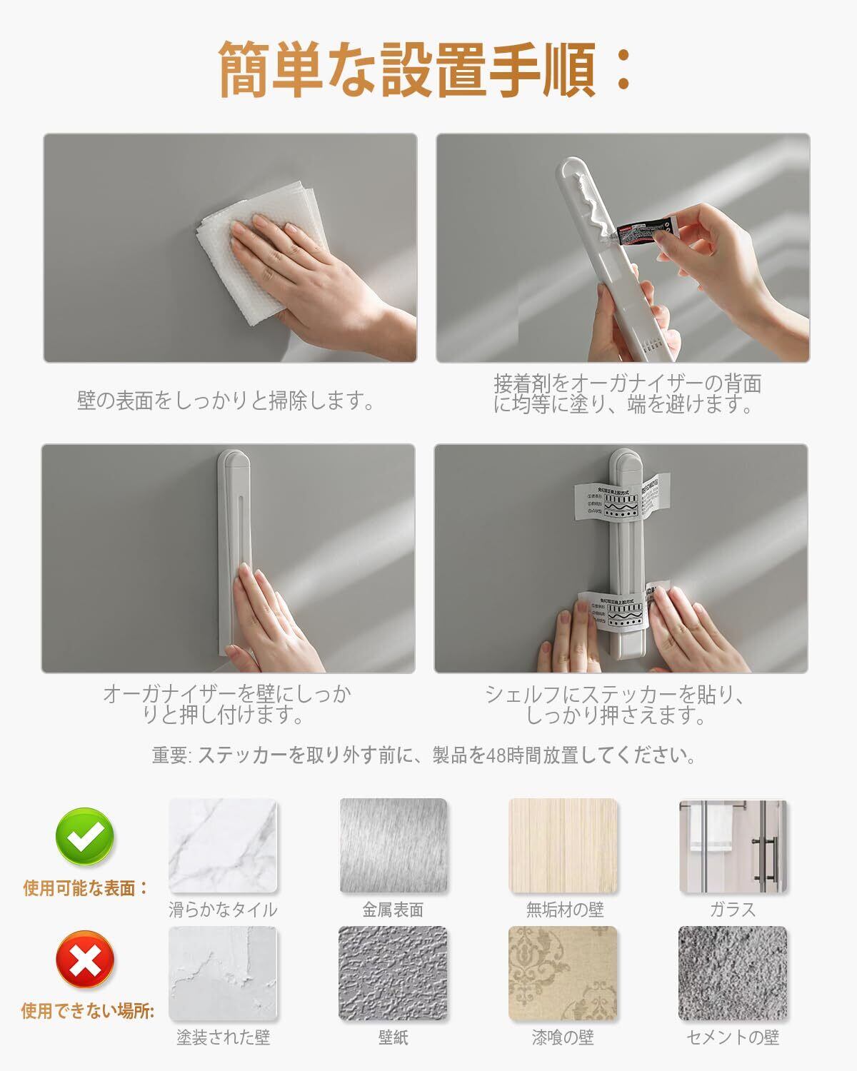 【耐荷重2.5kg|毎日の使用に耐える高耐久設計】高品質ABS素材を採用し、最大2.5kgまでしっかり支える頑丈な構造。タオルや洗濯物、小物など、毎日の生活で使える耐久性を実現しました。