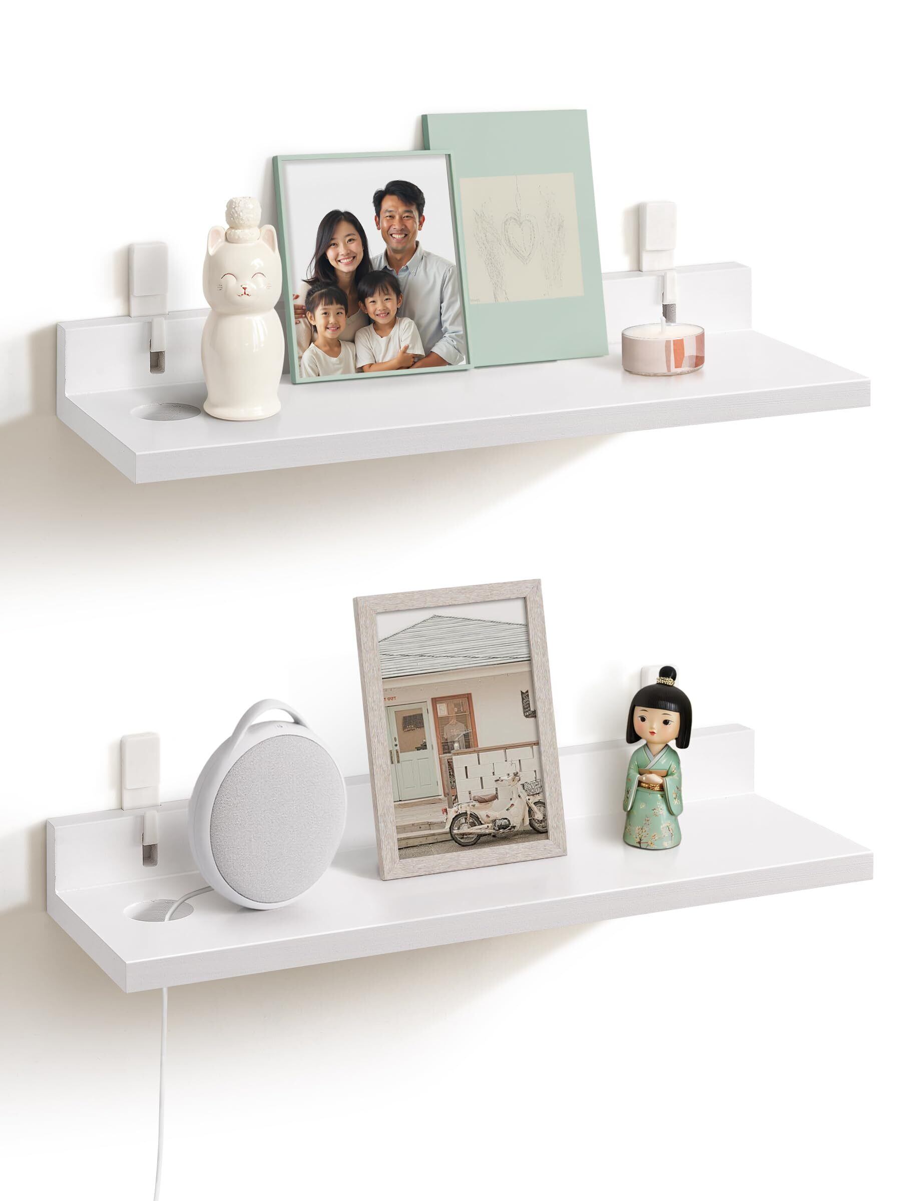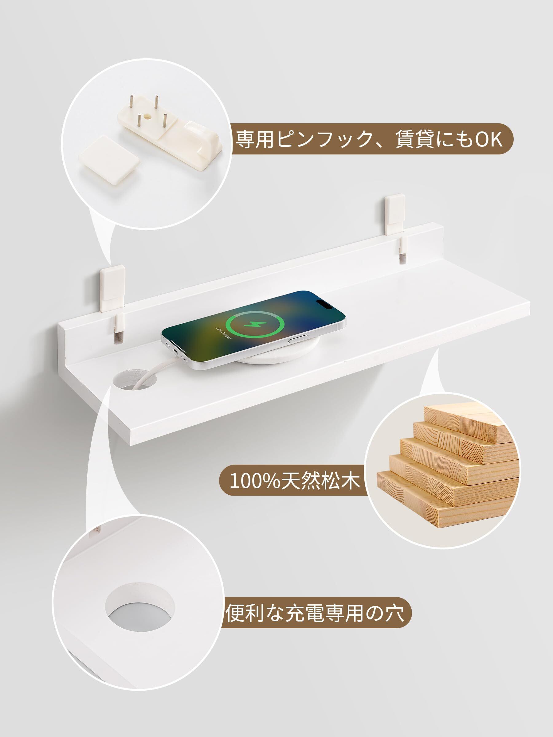 Afuly ウォールシェルフ 壁を傷つけない 壁掛けラック 木製 2個セット 壁掛け棚 壁掛けラック ウォールシェルフ 賃貸 壁棚 壁面収納 2個セット 充電専用ホール付き 壁ラック棚 キッチン 洗面所 寝室 本 穴あけない