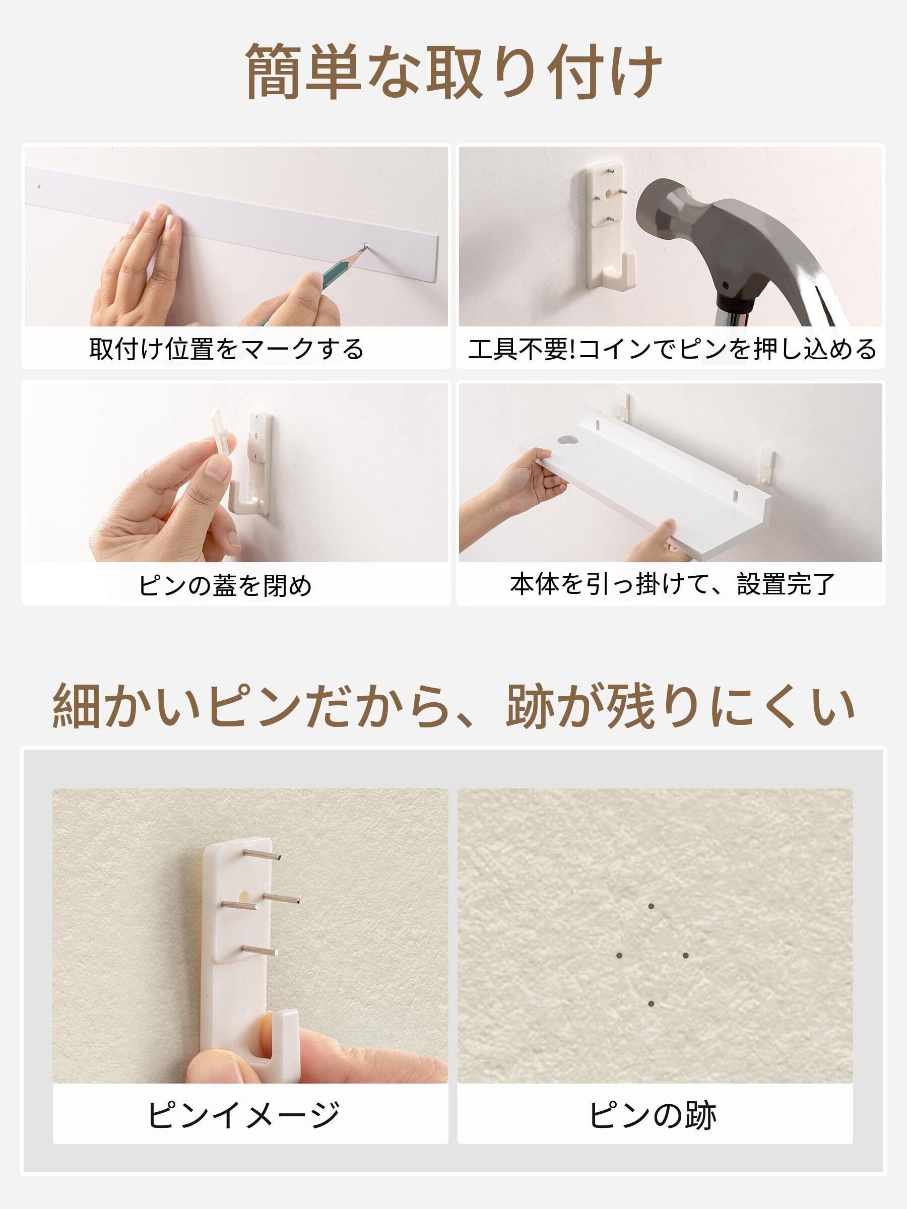 【壁への取り付けが簡単】当社の飾り棚は使いやすさを考慮して設計され、簡単な組み立てプロセスで、すぐに新しい壁の収納スペースを確保できます。ダボで取り付けるため、丈夫なダボで安定感があり、取付けは簡単で、ダボで取り付けるため、壁に跡を残す心配がありませんため、個人住宅や賃貸物件にも最適です