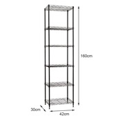 【商品仕様】本体:スチール(粉体塗装)サイズ:6段 幅42cm×奥行30cm×高さ160cm パーツ シート:フック*4 マット*6 マットは物の落下を防ぐことができます。(購入前にサイズを確認してください)