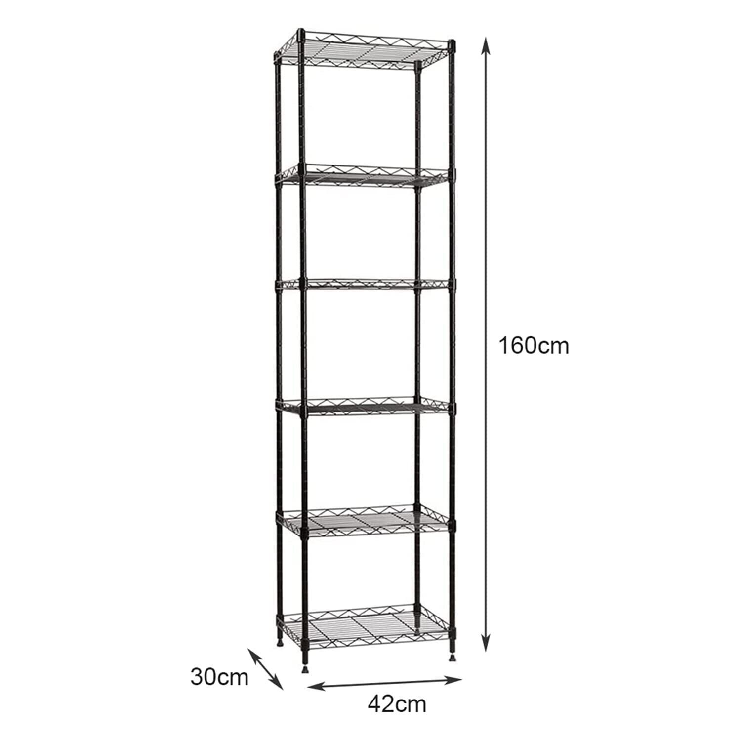 Fainyearn スチールラック レンジ台 キッチンラック 収納ラック キッチン 整理棚 本棚 シェルフ棚 メタル製 メタルラック 高さ調節 幅42cm×奥行30cm×高さ160cm (ブラック6段)
