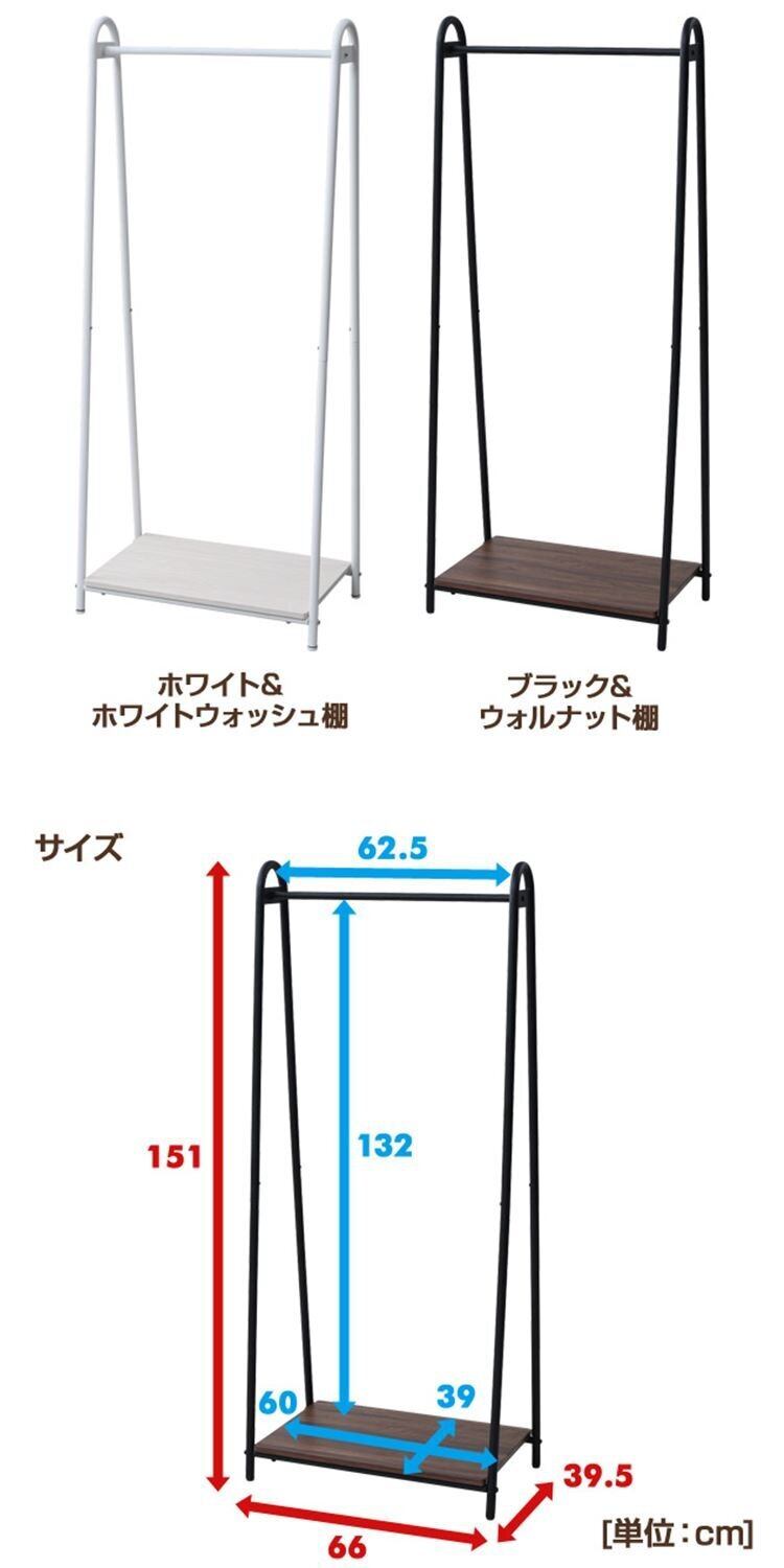 山善(YAMAZEN) ハンガーラック 幅66×奥行39.5×高さ151cm A型タイプ 棚板付き 全体耐荷重50kg 見せる収納 組立品 ウォルナット/ブラック ASH-S(WL/BK)