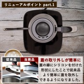 ●蓋の縁にシリコンを付けた形状にリニューアルしたことで、従来品より簡単に蓋を取外しできるようになって新登場。
