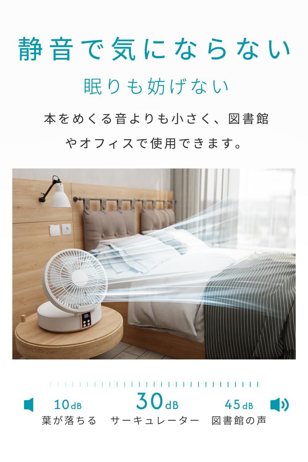 【三段階調節、折り畳み式サーキュレーター】最新の折り畳み式サーキュレーターは、コンパクトで場所に制限されることなく、家やオフィスなど、いつでもどこでも自然な新風を楽しむことができます。5枚の羽根を使用したサーキュレーターで、部屋の隅まで風を送り、空気循環を促進し、室内の空気を循環させる。エアコンと併用する場合、室内の温度を平衡させて、冷暖房の効率を高めることができ、さらに省エネにもなります。オフィスで卓上扇風機としても使用でき、通常の扇風機よりも快適で、長時間使用しても頭痛を起こしません。3段階の調節機能があり、柔らかい風から強い風まで、さまざまなシーンや状況に合わせた調節ができます。梅雨の季節には、部屋で洗濯物を干すことも可能で、半乾きの匂いがしないのも魅力の1つです。