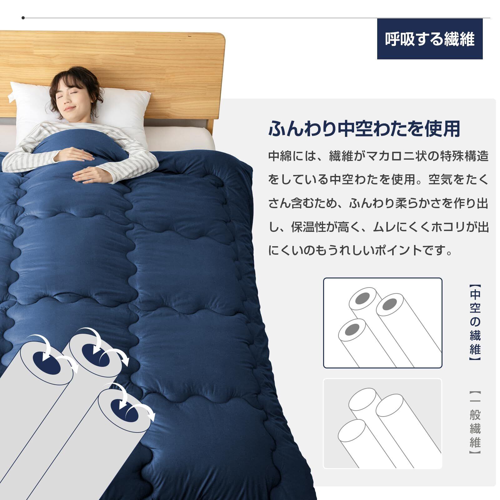 【ピーチスキン加工·合い掛け布団】桃のようなソフトタッチで、素肌に触れてもやわらかく心地いいです。静電気抑制(防止)加工で乾燥な季節でもご心配なく使用できます。なお、デリケートなお肌の方、お子様にも安心してお使いいただけます。