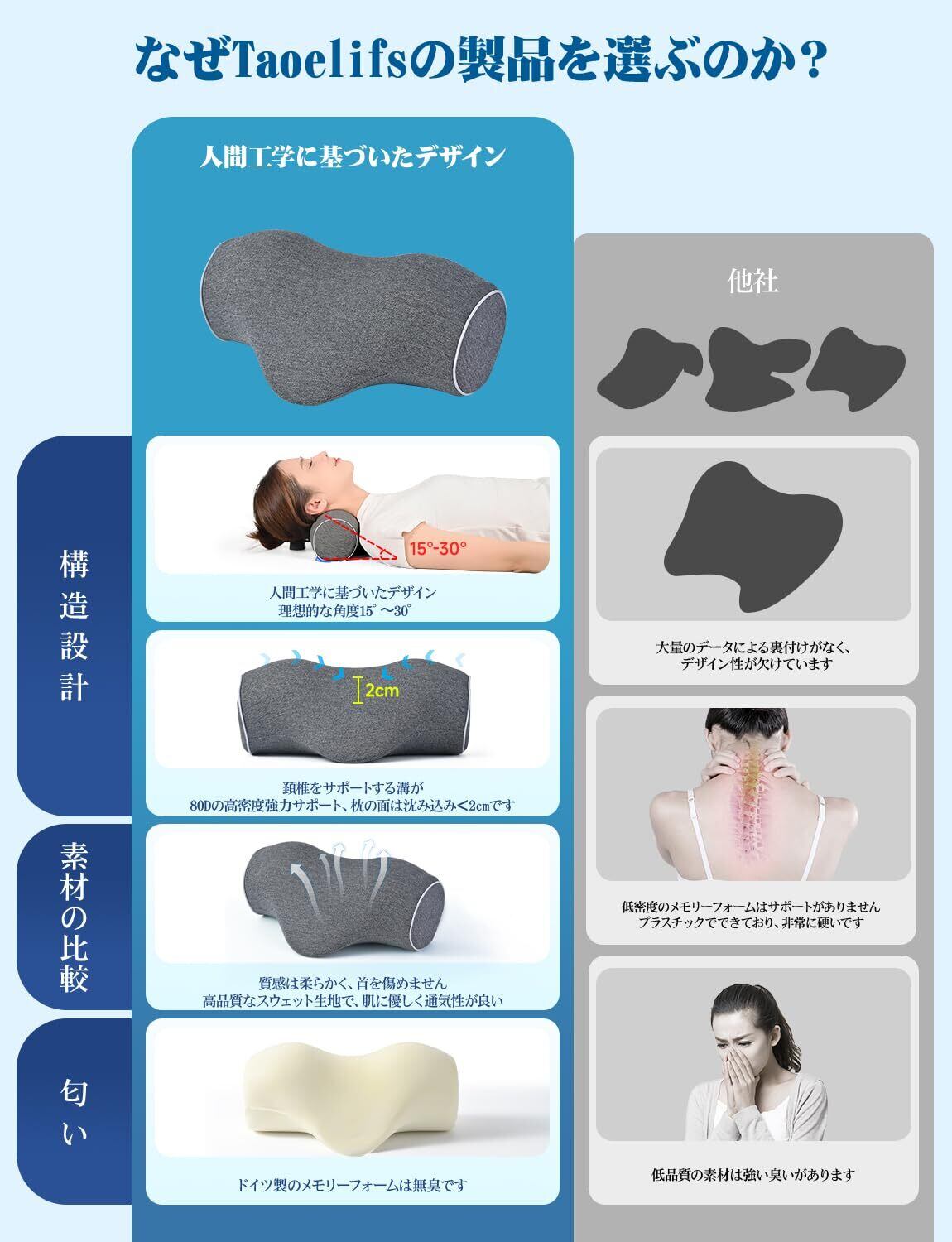 Taoelifs 首枕 ストレートネック 枕 80D高密度低反発メモリーフォーム 95%以上の首フィット率 人体工学設計で首の疲労を軽減 無臭・携帯性 父の日/母の日/誕生日/クリスマスプレゼントに最適(ダークグレー)