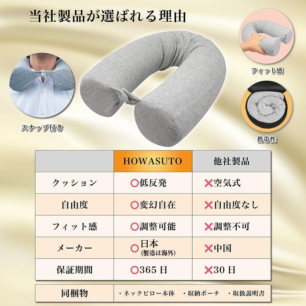【人気商品】Howasuto(ホワスト) ネックピロー 首枕 【睡眠コンサルタント監修】 【形は自由自在】トラベルピロー 低反発 クッション (グレー)