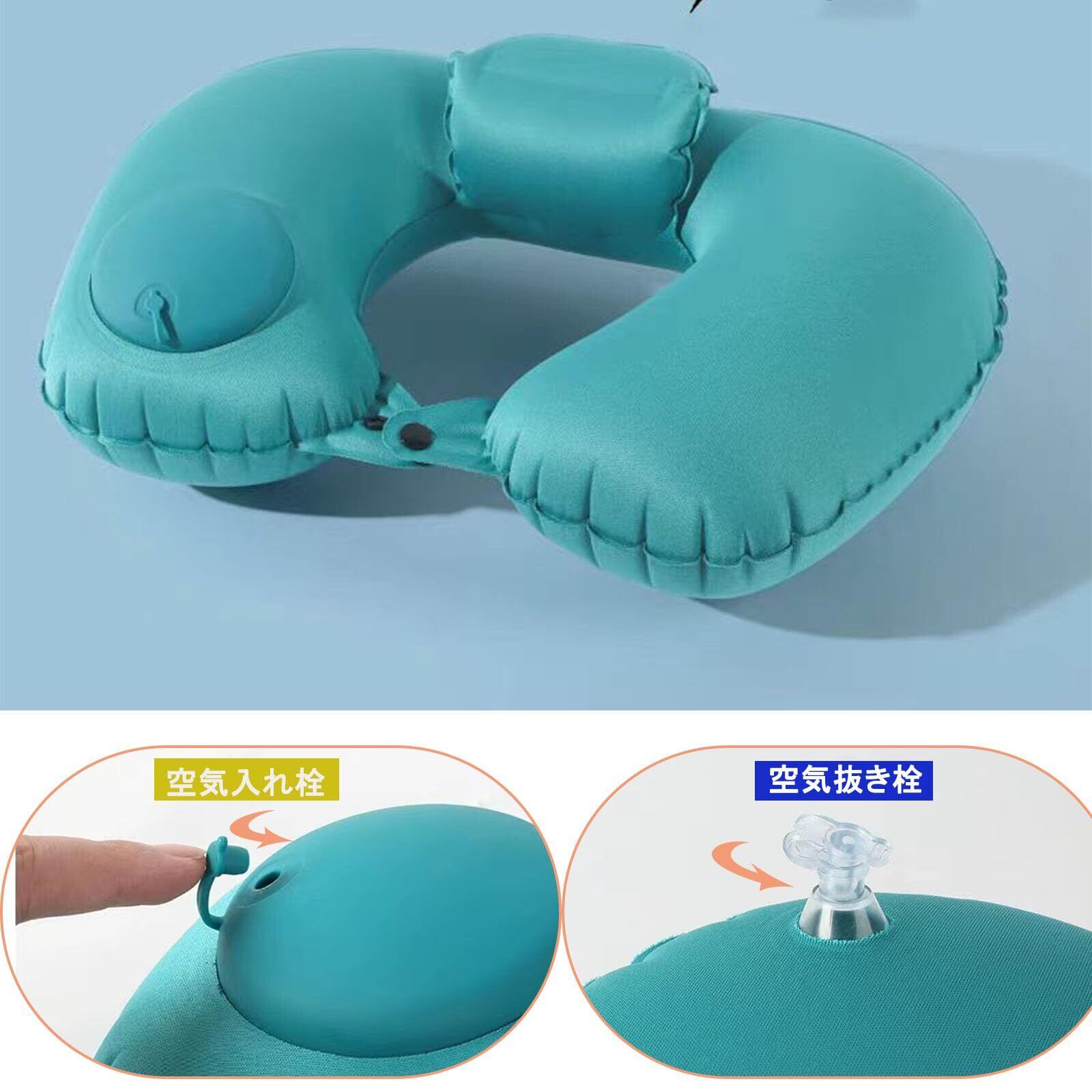 ネックピロー ポンプ式 U型 エアーピロー 首枕 ヘッドレスト付き エアピロー ポンプ 枕 携帯枕 超軽量 コンパクト 旅行 飛行機 バス 海外旅行 収納ポーチ付 飛行機 旅行用 電車 車 携帯用枕 まくら 安眠 快眠 トラベルグッズ ダークグレー (グリーン)