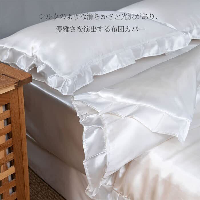 布団カバー セット 涼感 おしゃれ ツルツル ボックスシーツ 冷感 夏用 シルクみたい サテン ツヤ 光沢 シングル セミダブル レーヨン 柔らか 可愛い 布団カバーセットフリル付き 優しい 肌触り 寝具 掛布団 おしゃれ 北欧 まくら 丸洗いOK 和式 洋式 (シャンパン, シングル3点セット)