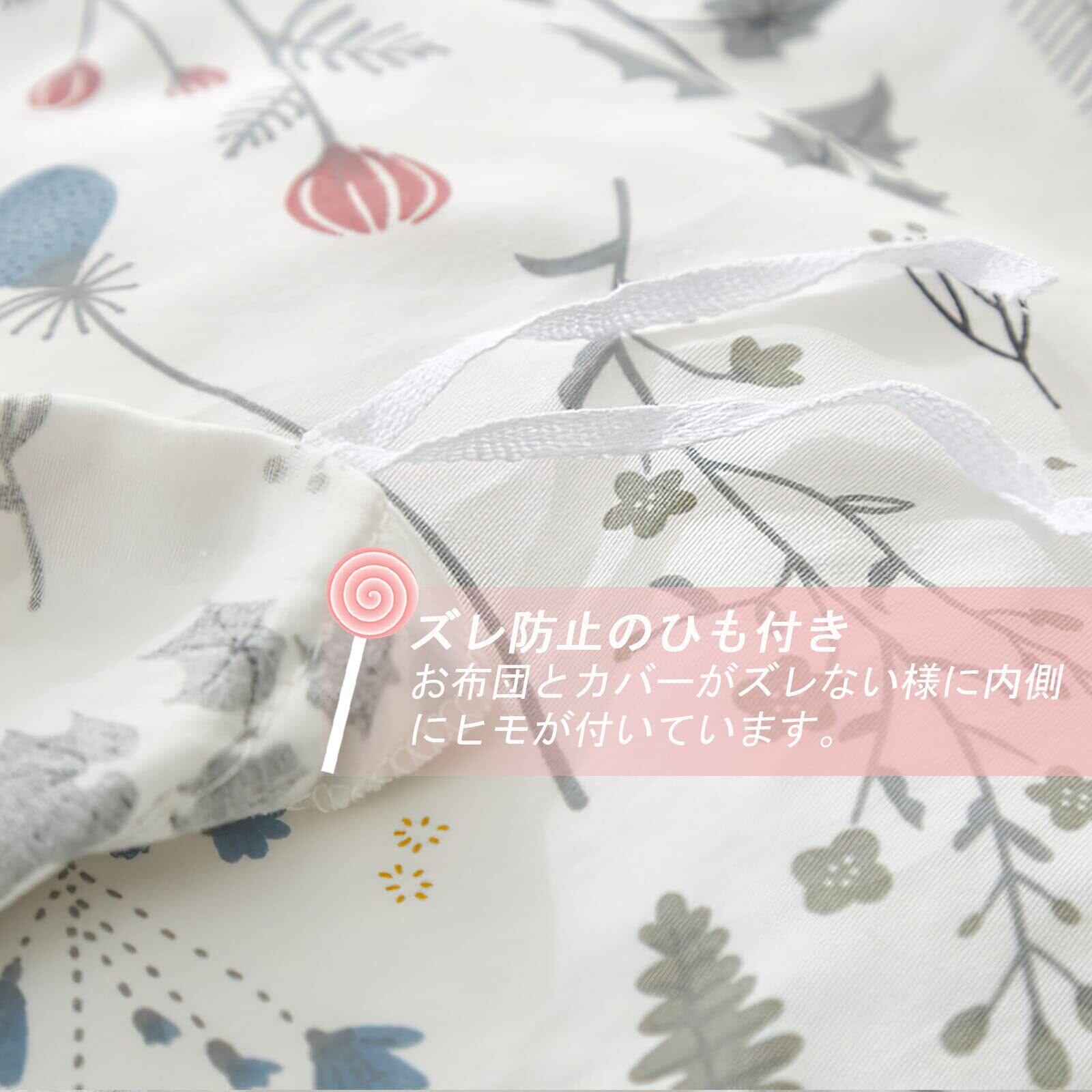 【仕様】掛けふとんカバー:片側194cmファスナー付き、8ヶ所ヒモ付き ボックスシーツ:全周ゴム仕様 ピロケース:封筒式