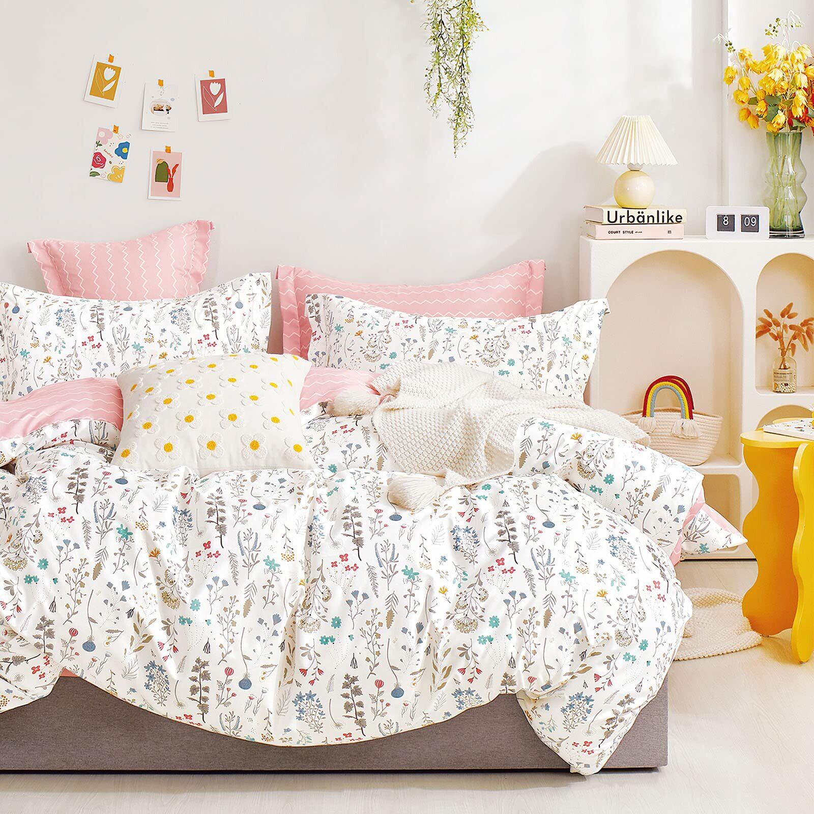 【在庫処分】KEAYOO 寝具カバー 掛け布団カバー 枕カバー ボックスシーツ ベッド用 封筒式 優しい肌触り 柔らかい 通気性 抗菌 防臭 四季通用 (ピンク+白, シングル・3点セット)