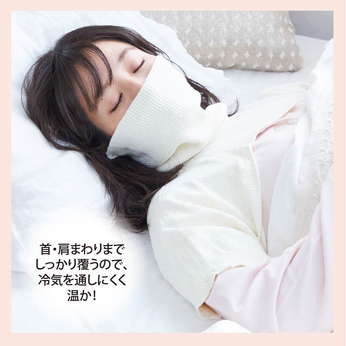 ネック部分を伸ばすと口元まで覆い、喉を乾燥から護ります。