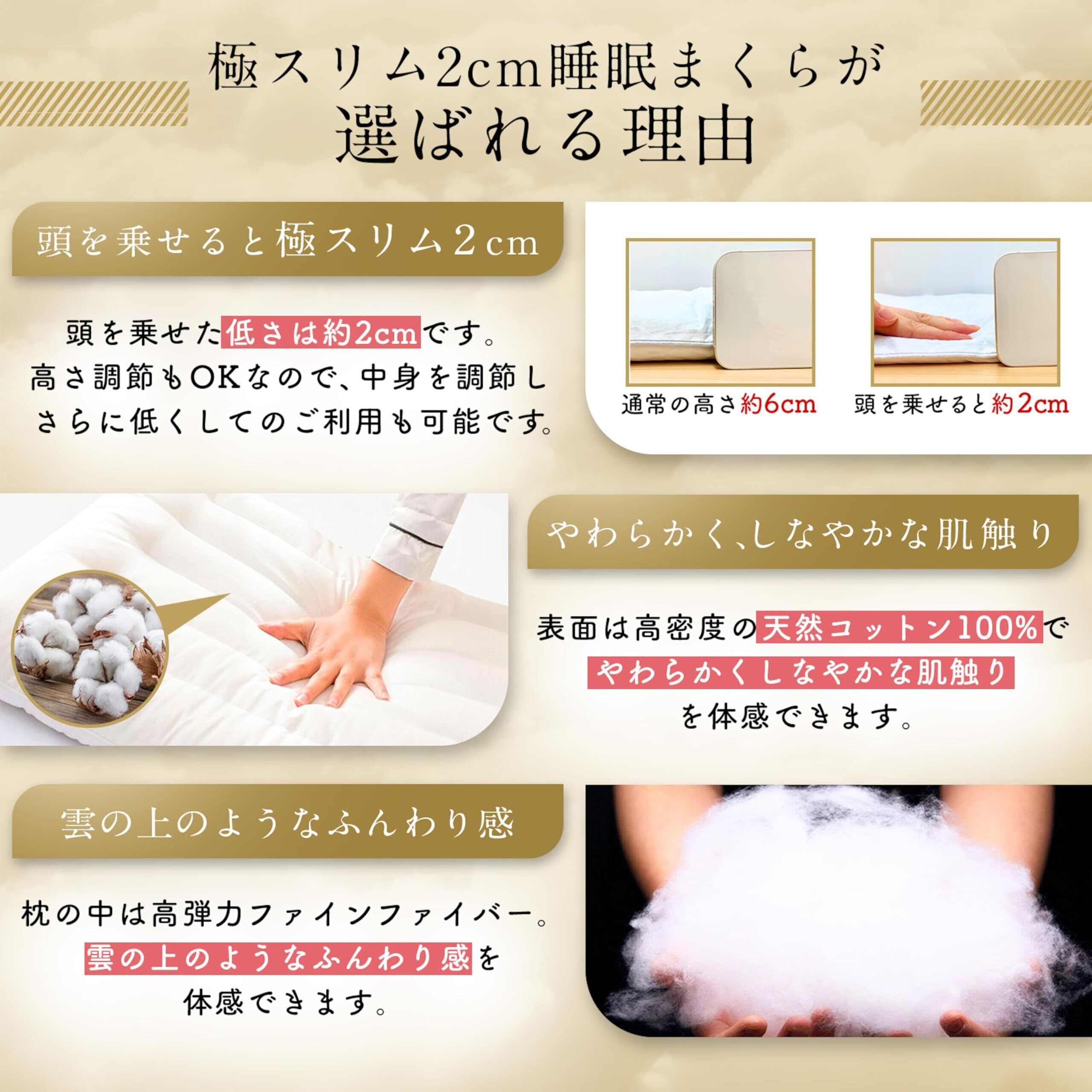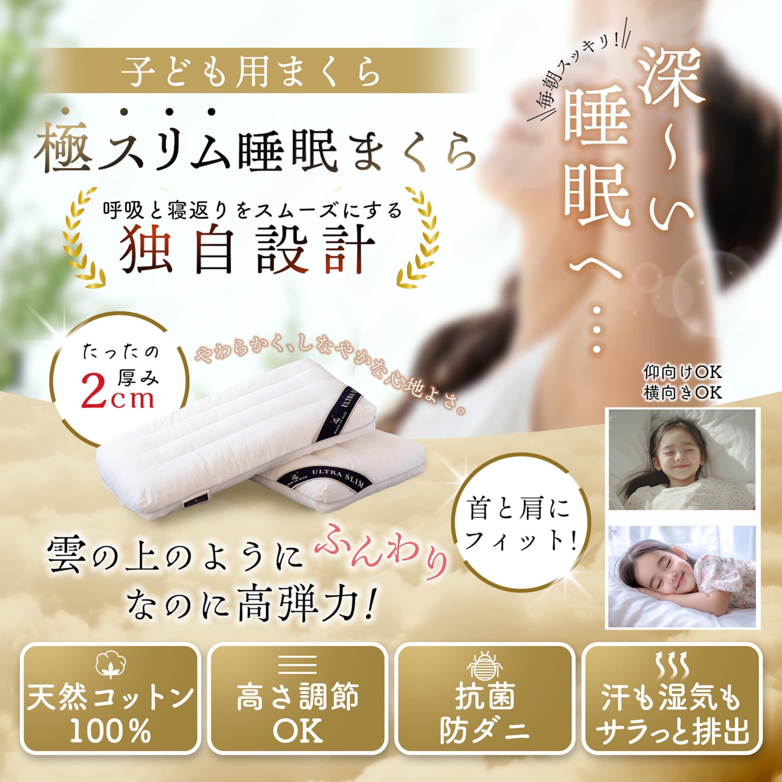 子供用 極スリム2cm 睡眠まくら 枕 子ども キッズ枕 小学生 洗える 丸洗い可能 高さ調節 柔らかい 天然コットン (子供用 / 30×50cm)