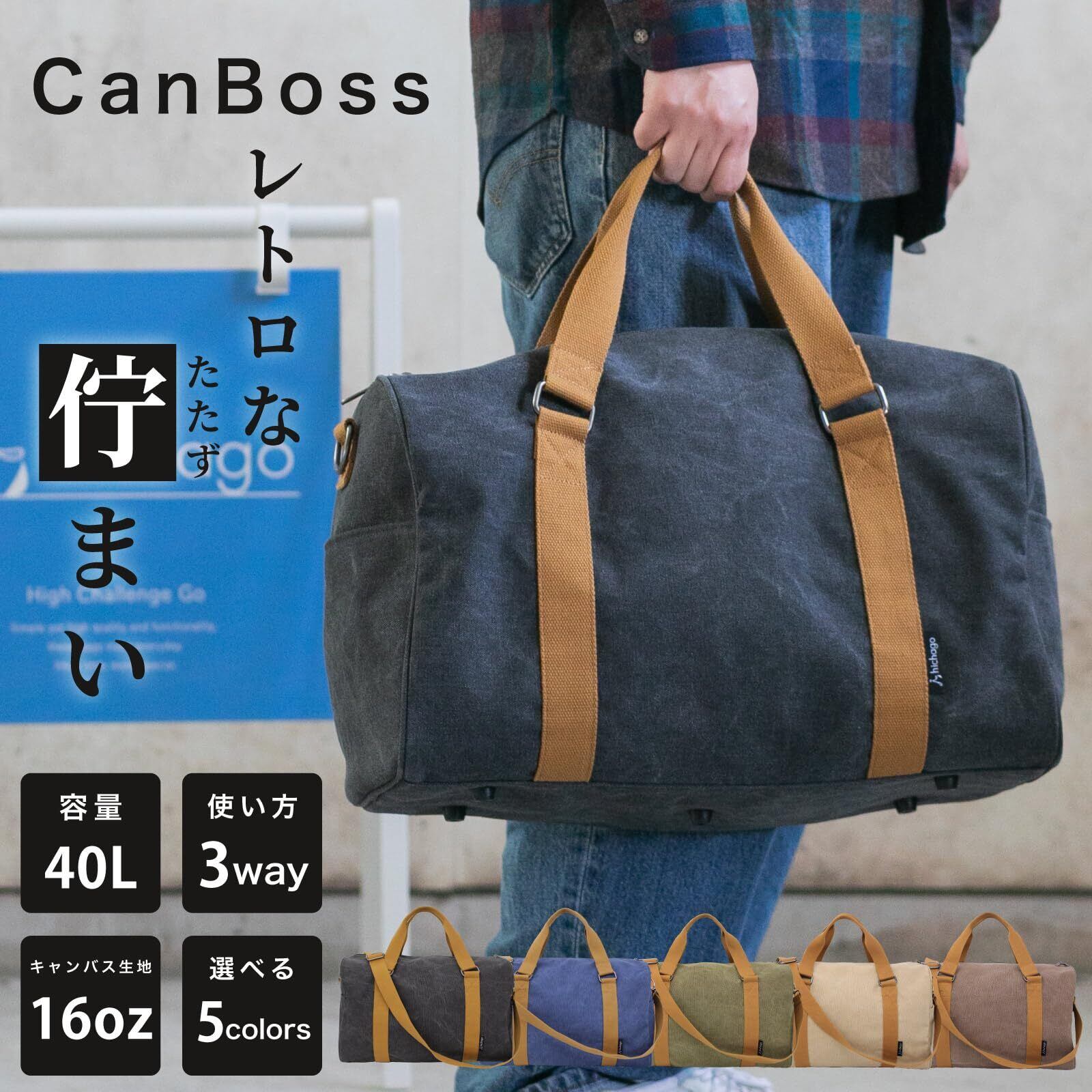 hichago ボストンバッグ 【厚手のキャンバス生地】 旅行 40L 大容量 3WAY ショルダー付き キャリーオン対応 機内持ち込み (すみ)