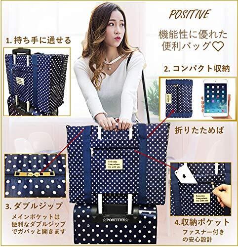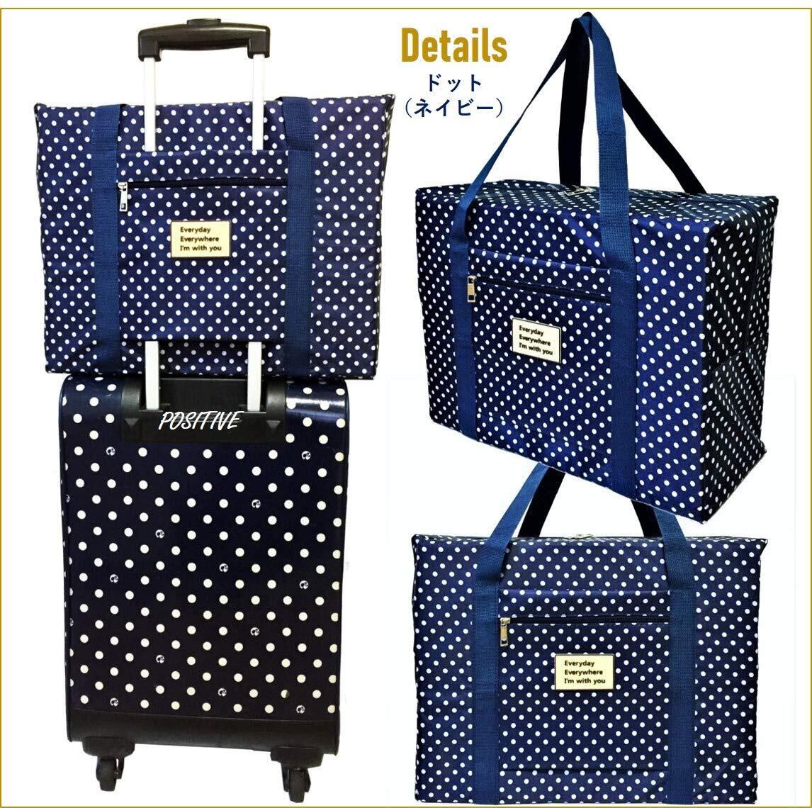 【新着商品】【ポジティブ】 折りたたみ トラベルバッグ 機内持込可 スーツケース の持ち手に通せる 手のひらサイズの ボストンバッグ 旅行バッグ 書付き (07.ドット(ネイビー))