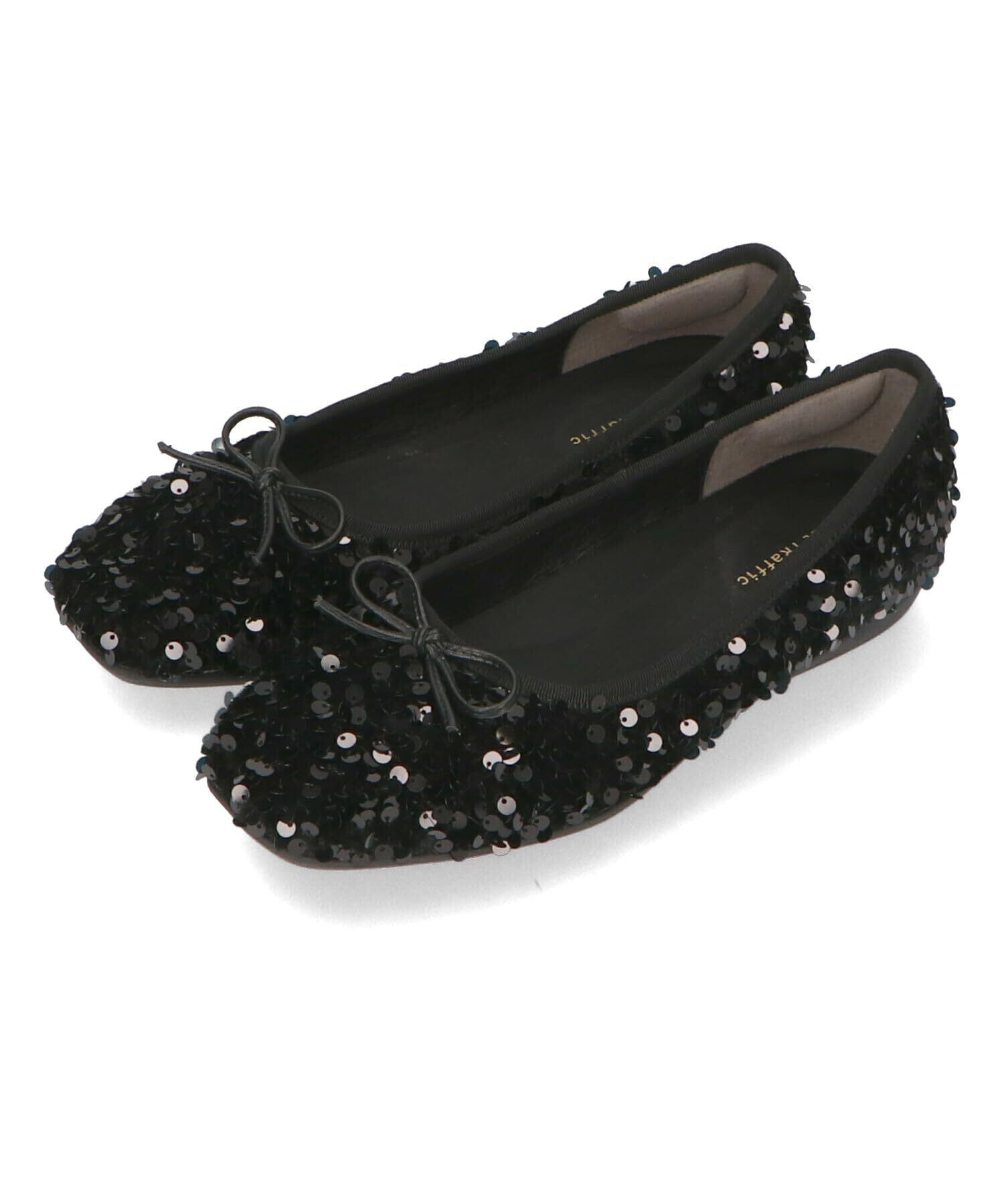 ベロア素材に大胆なスパンコールをあしらったバレエシューズ