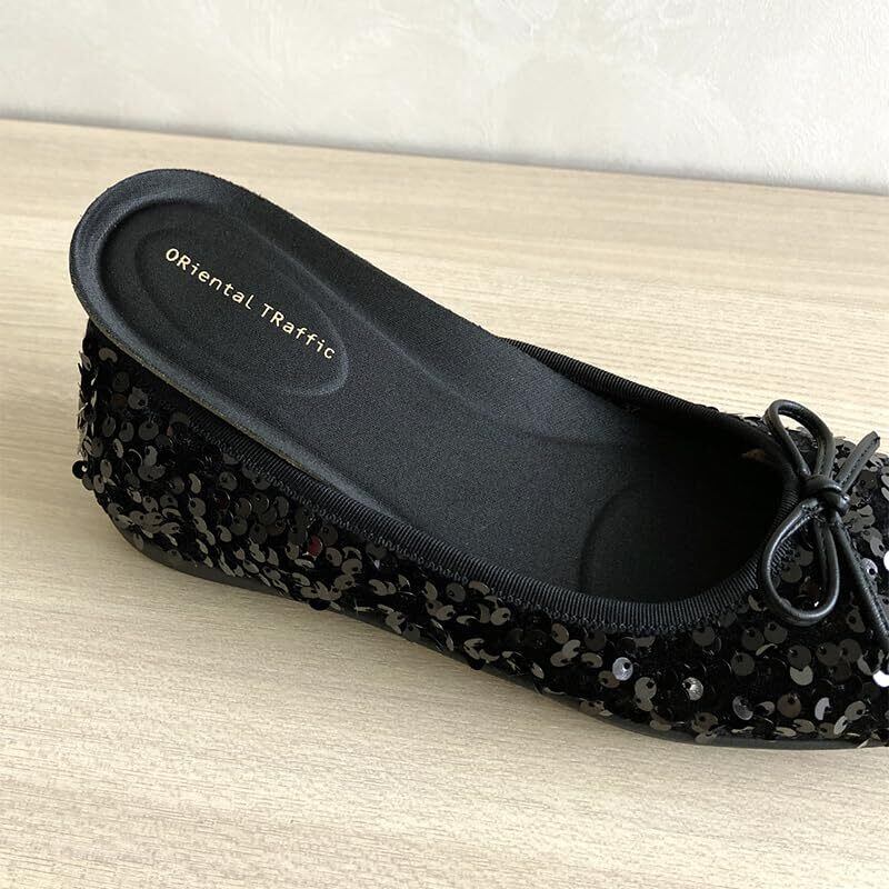 【人気商品】[オリエンタルトラフィック] バレエシューズ 跳べるパンプス フラット スパンコール ベロア スクエアトゥ キラキラ 軽量 クッション入り 中敷洗濯可能 レディース R-3216