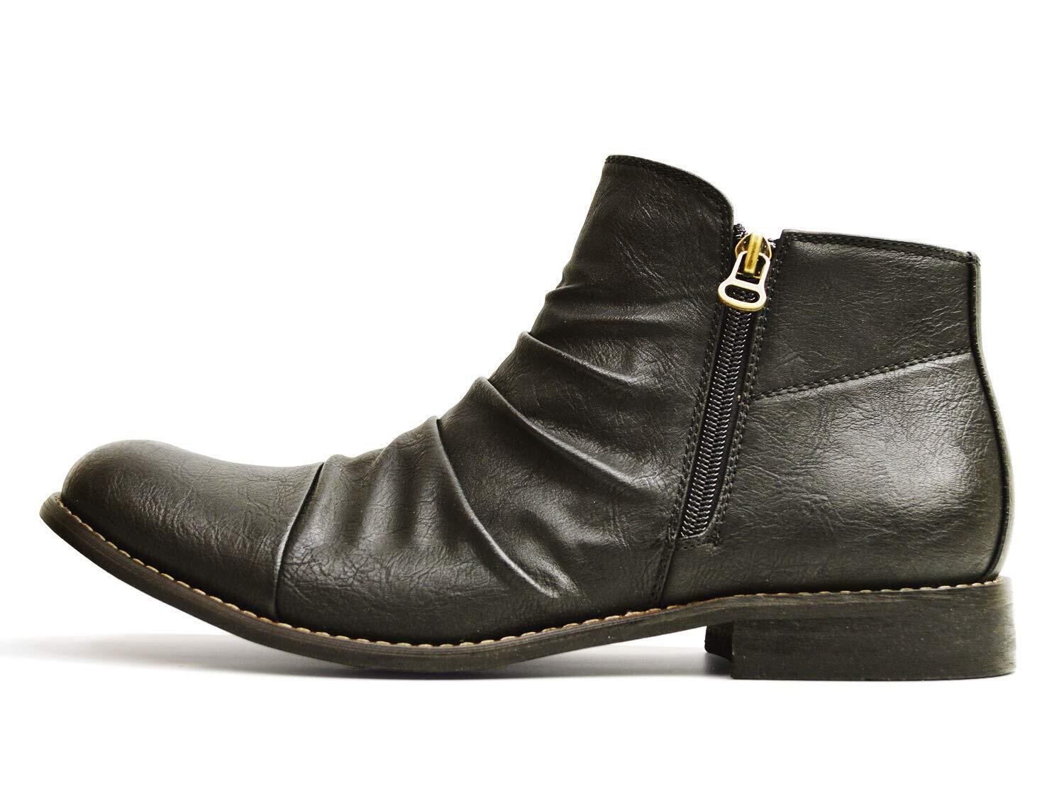 [ジーノ] ドレープ ショートブーツ エンジニアブーツ メンズ ブーツ サイドジッパー シューズ 靴 男