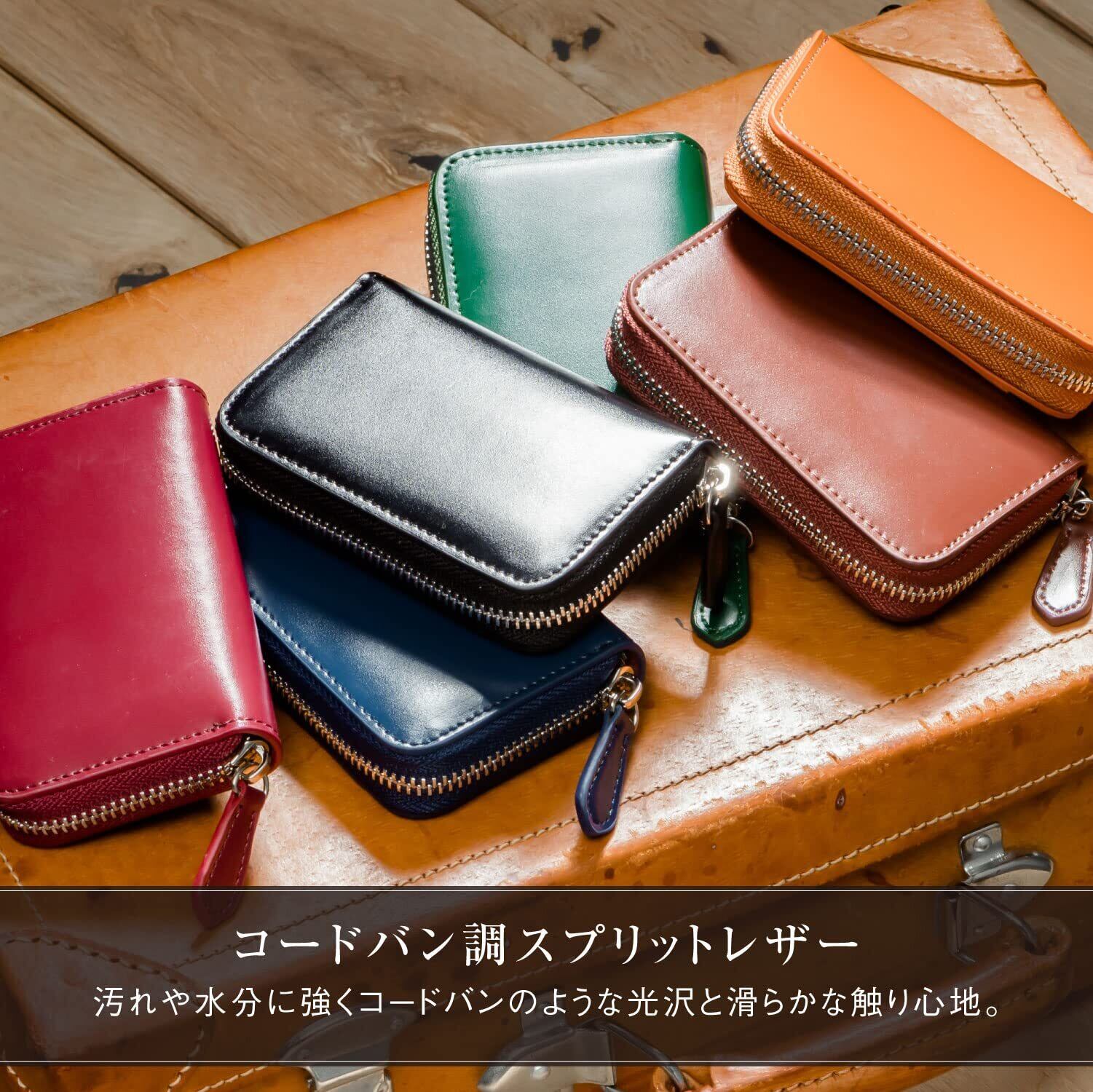 [ムラ] コインケース 小銭入れ メンズ 本革 ファスナー コードバン調 カード入れ