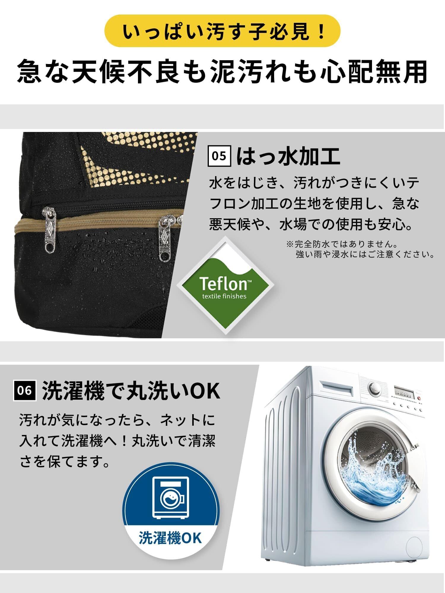 はっ水加工の素材を使用した、「洗えるジュニアバックパック」