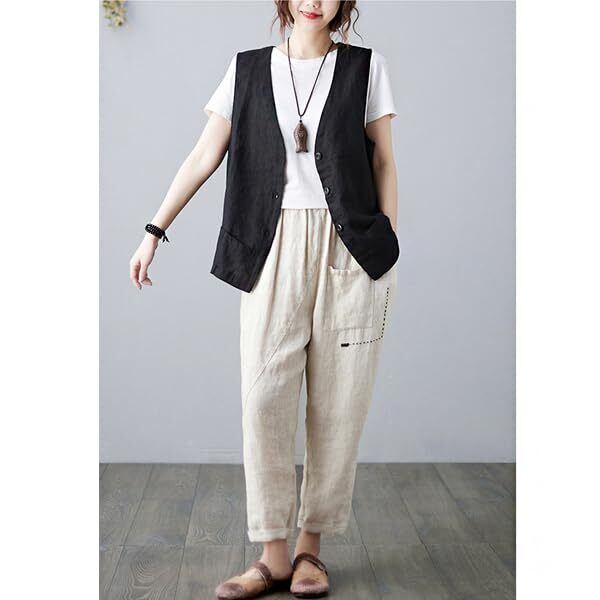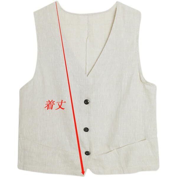 [Ailiyumo] ベスト レディース 綿麻 チョッキ vネック 春夏 カーディガン 袖なし 薄手 ジレベスト 無地 カジュアル