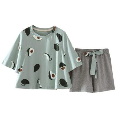 [RAKUYUME] 子供 パジャマ キッズ 女の子 小学生 夏 半袖 アボカド ルームウェア 綿100 部屋着 上下セット130 140 150 160 ゆったり 寝間着 韓国 おしゃれ かわいい