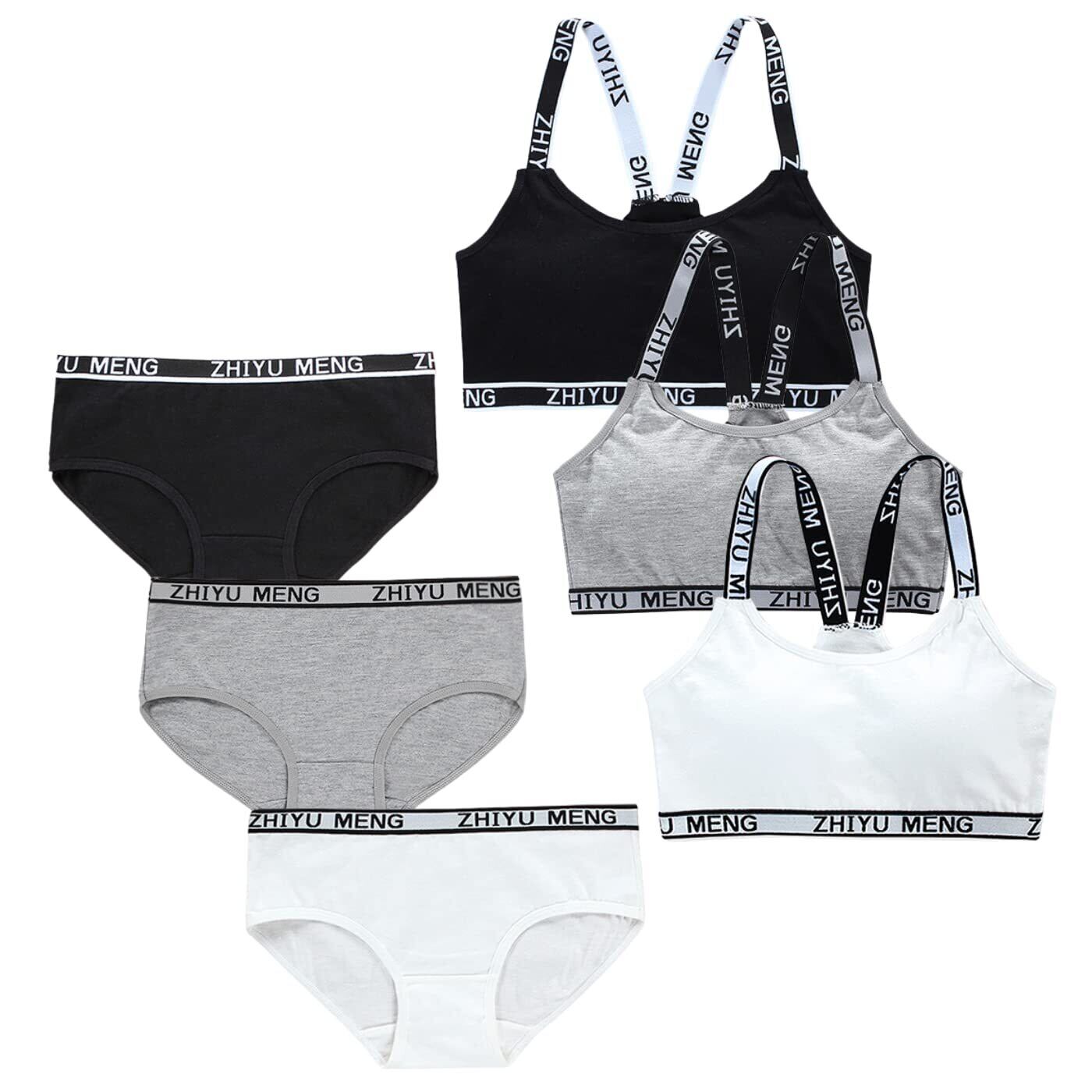 [FARFADET] ガールズブラ 上下セット ハーフトップ ジュニア ブラジャー ショーツ カップ付 インナー スポブラ 3色組