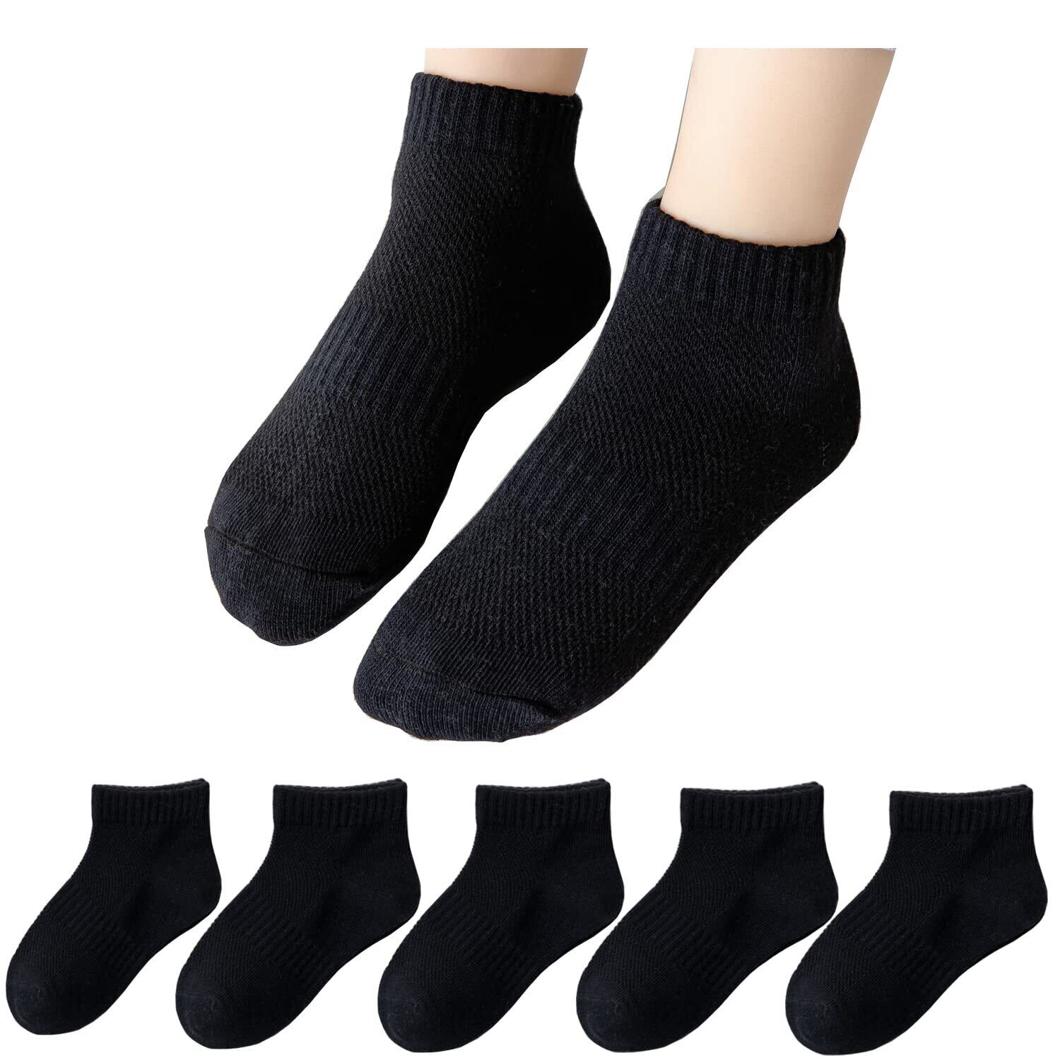 [InSomila] [インソミラ] スクールソックス キッズ 子供 靴下 男の子 女の子 5足組 メッシュ くるぶしソックス 夏 ジュニア かわいい スポーツ 無地 通気 ソックス スニーカーソックス 黒 白