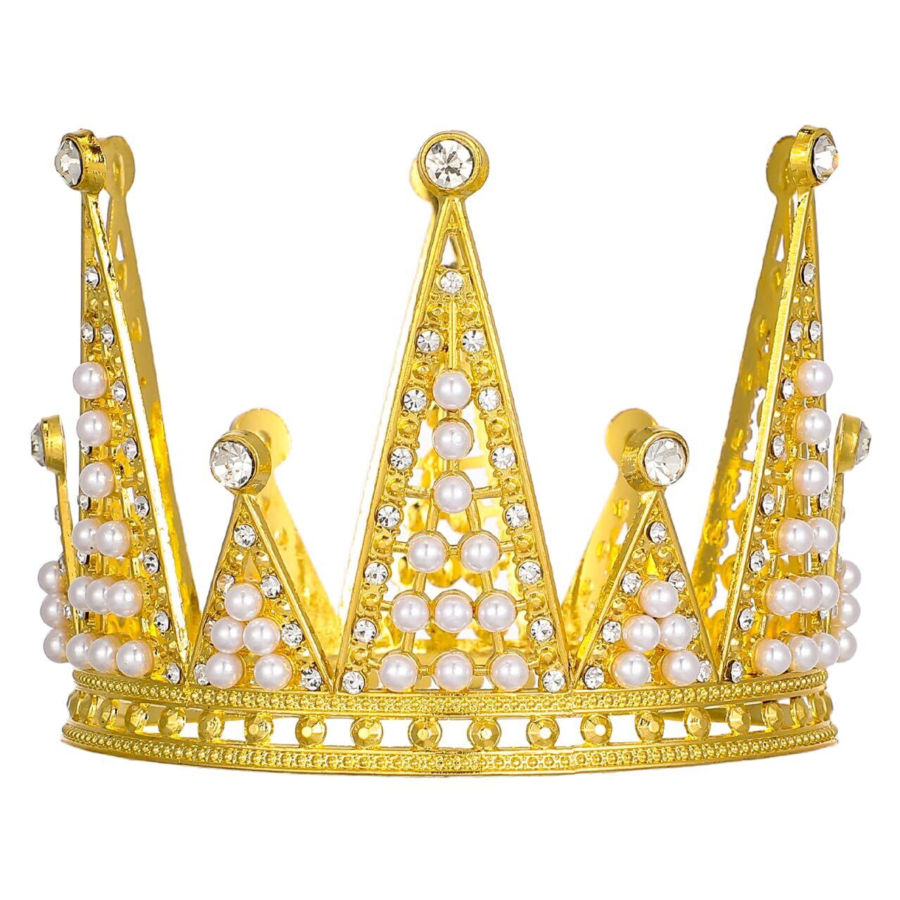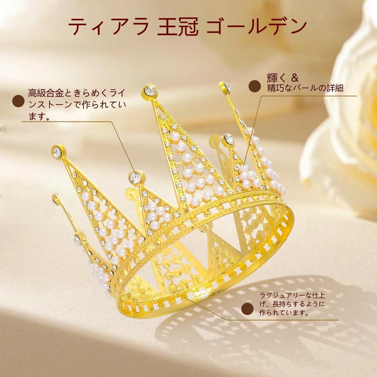 BESTOYARD ブライダル クラウン 王冠 花嫁 髪飾り ラインストーン パール ティアラ 結婚式パーティー ケーキ デコレーション ヘアアクセサリー ゴールデン