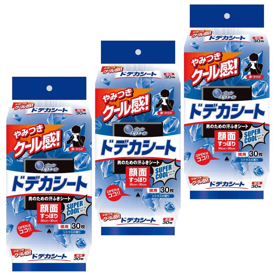 エリエール 汗拭きシート 大判サイズ ドデカシート for MEN スーパークールタイプ 90枚(30枚×3パック) 爽やかなシトラスの香り【まとめ買い】