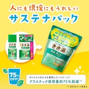 温泉ミネラル+炭酸ガスが温浴効果を高め、日常生活の様々な身体の症状を緩和する入浴剤です。 ●環境配慮型の「サステナパック」へ変更 ・プラスチック使用量 約75%削減(*1)(*1:従来品ボトル重量比) ・小さく丸めて捨てられる。 ・つめかえ要らずでパッと使える。 ・計量スプーン付き。スプーン1杯30g。スプーンでチャックを閉められる。容器にスプーンをかけて保管できるフック付き。 ・安心して保存できるチャック付き。 ●効果感と心地よさの両方を表現したパッケージデザイン ●温泉構成成分(*2)を10%増量(*3)(*2:硫酸マグネシウム、塩化カリウム、炭酸カルシウム、食塩、クレイ *3:従来品比) ◆本品は、温泉の湯を再現したものではありません。