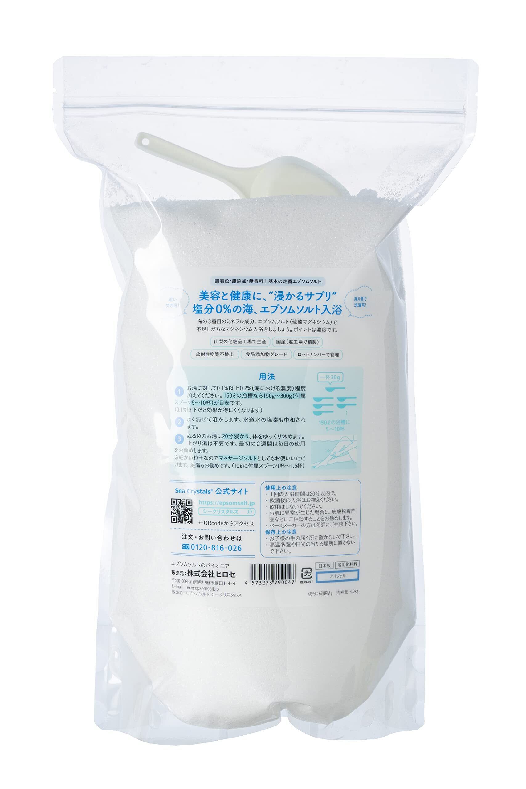エプソムソルト 4kg 計量スプーン付 国産 化粧品 入浴剤 放射能検査 品質検査済 バスソルト