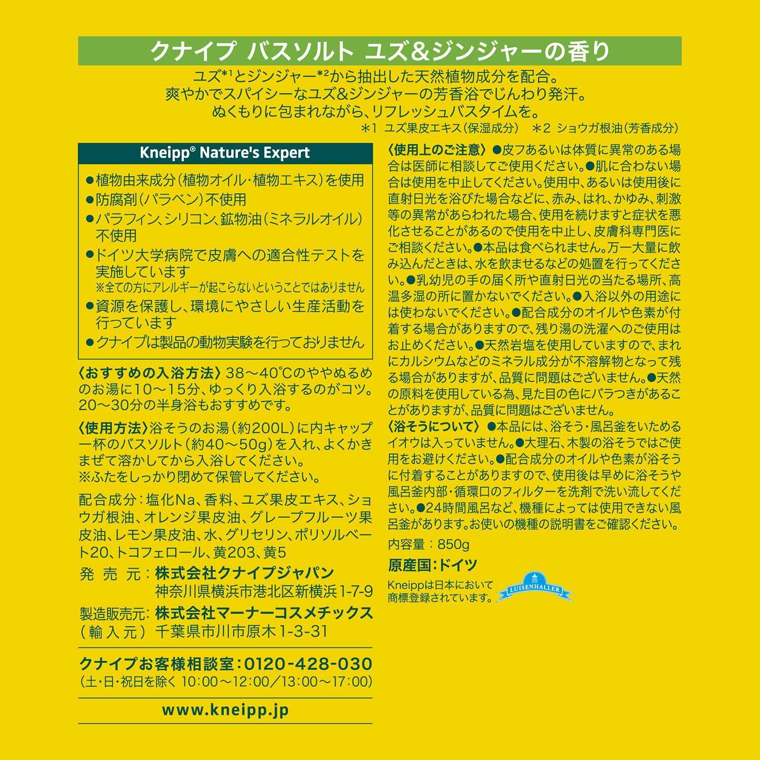 【クナイプ公式】 バスソルト ユズ&ジンジャーの香り 850g 発汗・温まり