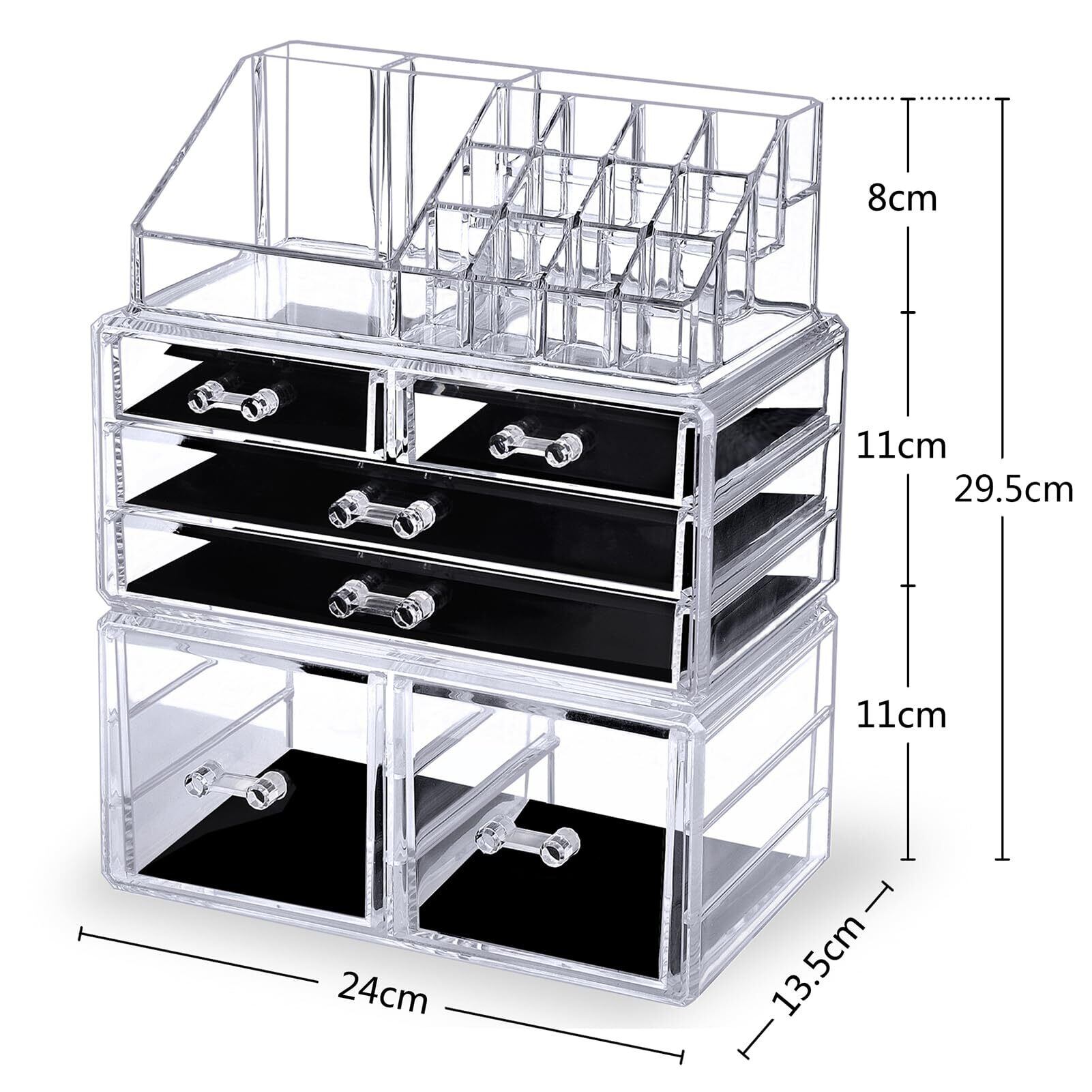 大容量:2つの大きな引き出し、2つの中型引き出し、2つの小型引き出しに加え、16個の異なるサイズの仕切りが付いた上部収納スペースがあります。組み立て後のサイズは、24cm(縦)×13.5cm(横)×29.5cm(高さ)です。