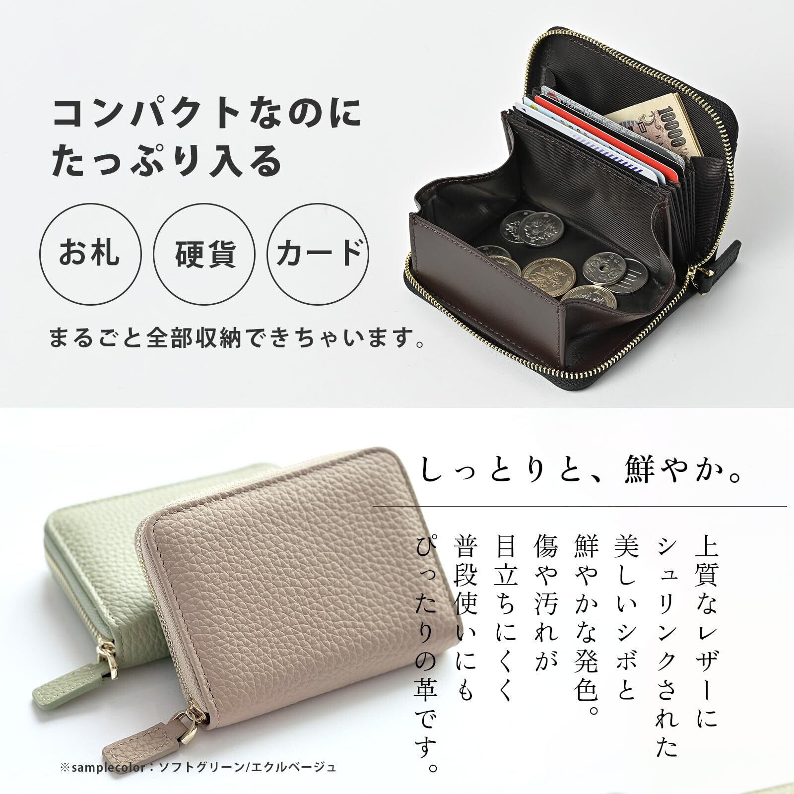 【新着商品】[QUARE] カードケース カード入れ 小銭入れ ミニ財布 レディース 大容量 コンパクト 小さい スキミング防止 本革 コインケース (エクルベージュ)