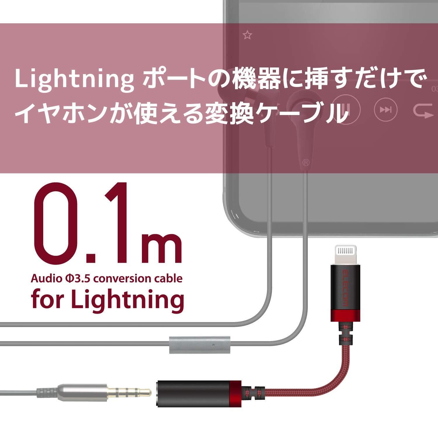 【在庫処分】エレコム イヤホンアダプタ 【 Lightning - 3.5mm 】 イヤホンジャック変換 4極 通話/音楽対応 高耐久 Apple認証品 レッド MPA-L35S01RD